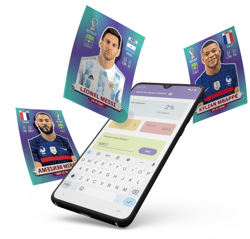 Aplicación diseñada para llevar un control de la colección de estampas del mundial. Ayuda saber cuanto porcentaje llevas de la colección y cuantas estampas tienes repetidas.